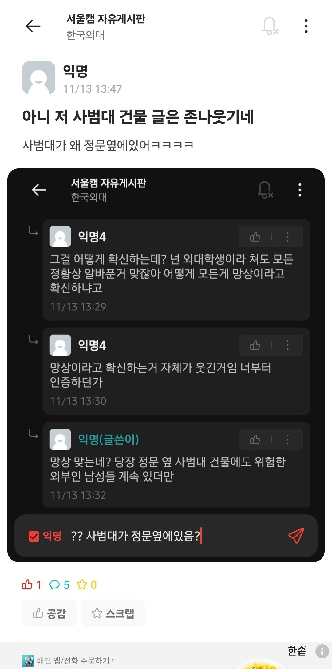 참고로 외대 사범대생 쓰는 건물은 후문근처에 있다 정문은 사이버대학건물임 ㅋㅋㅋㅋㅋ