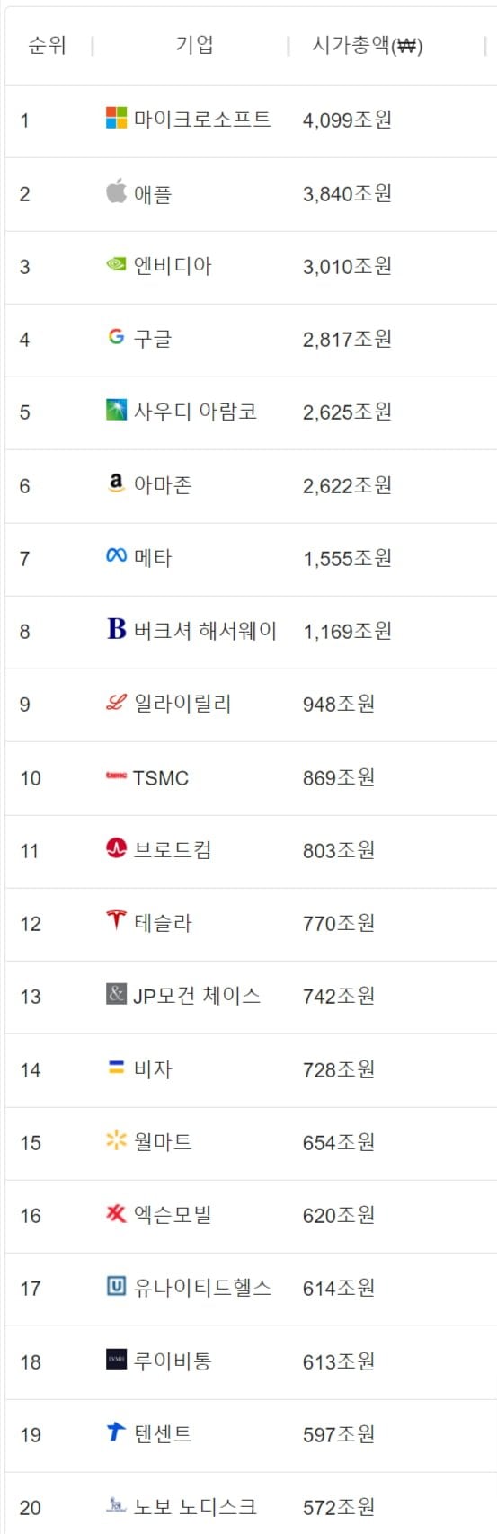 확실히 최상위권에는 it나 반도체같은 기술 기업들이 많네요ㄷㄷ