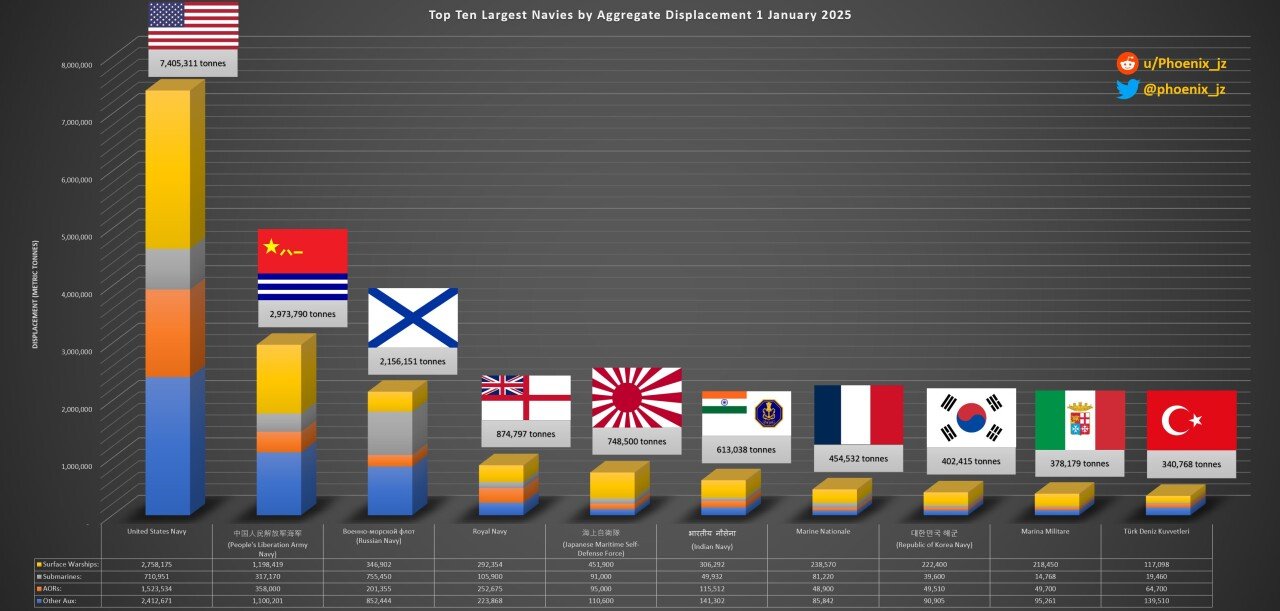 한국해군이 드디어 배수량으로 이탈리아 해군을 넘어섬 ㄷㄷ 사실상 규모 질적인 전력으로도 해군도 공군도 세계 10위 안에 드는 전력임.