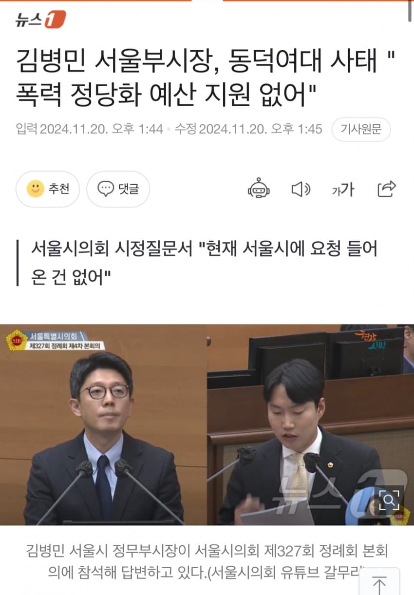 속보) 서울시: 동덕여대 폭력시위 예산지원 없음