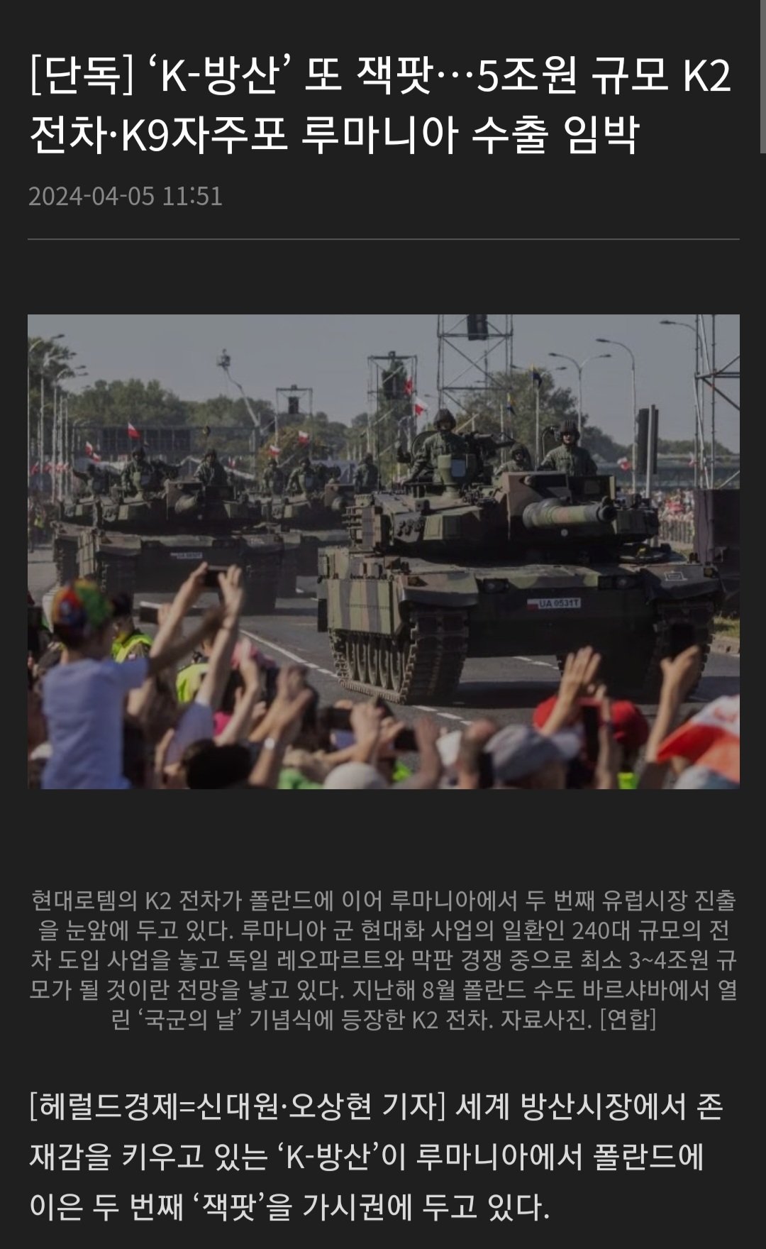 루마니아 K2 전차 수출임박 ㄷㄷ
