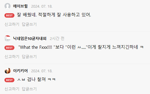 욕설이나 비방 목적의 댓글은