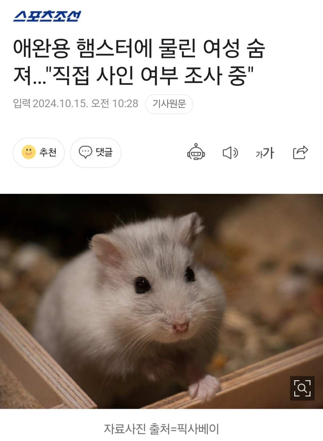 수사 기관은 햄스터에 의한 사망인 지에 대해 조사 중이다.