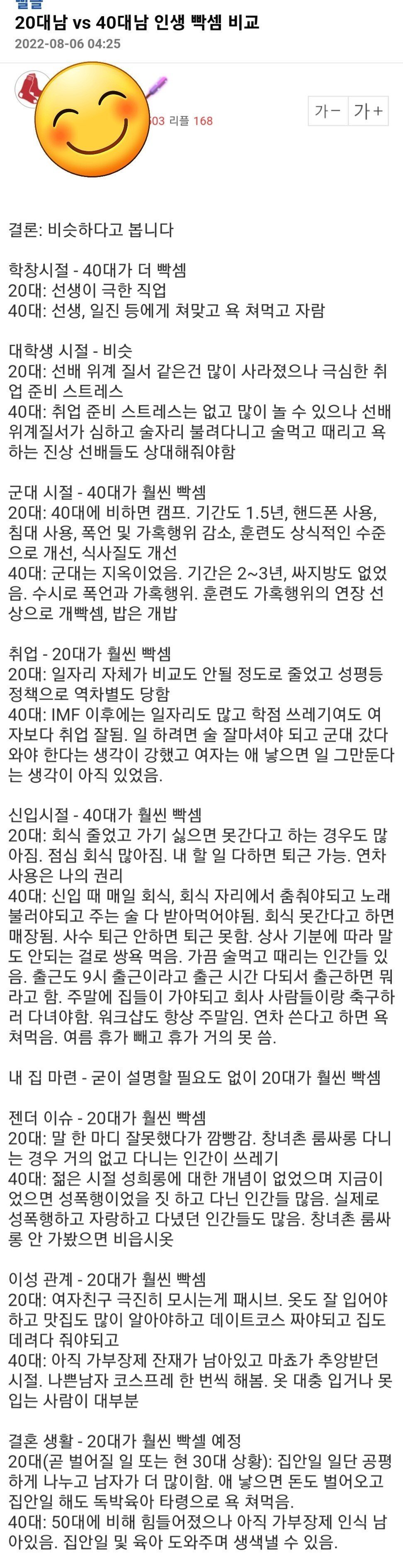 엠팍 아재의 20대남 vs 40대남 인생 빡셈 비교