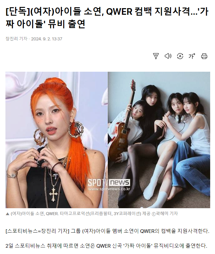 [단독](여자)아이들 소연, QWER 컴백 지원사격…'가짜 아이돌' 뮤비 출연