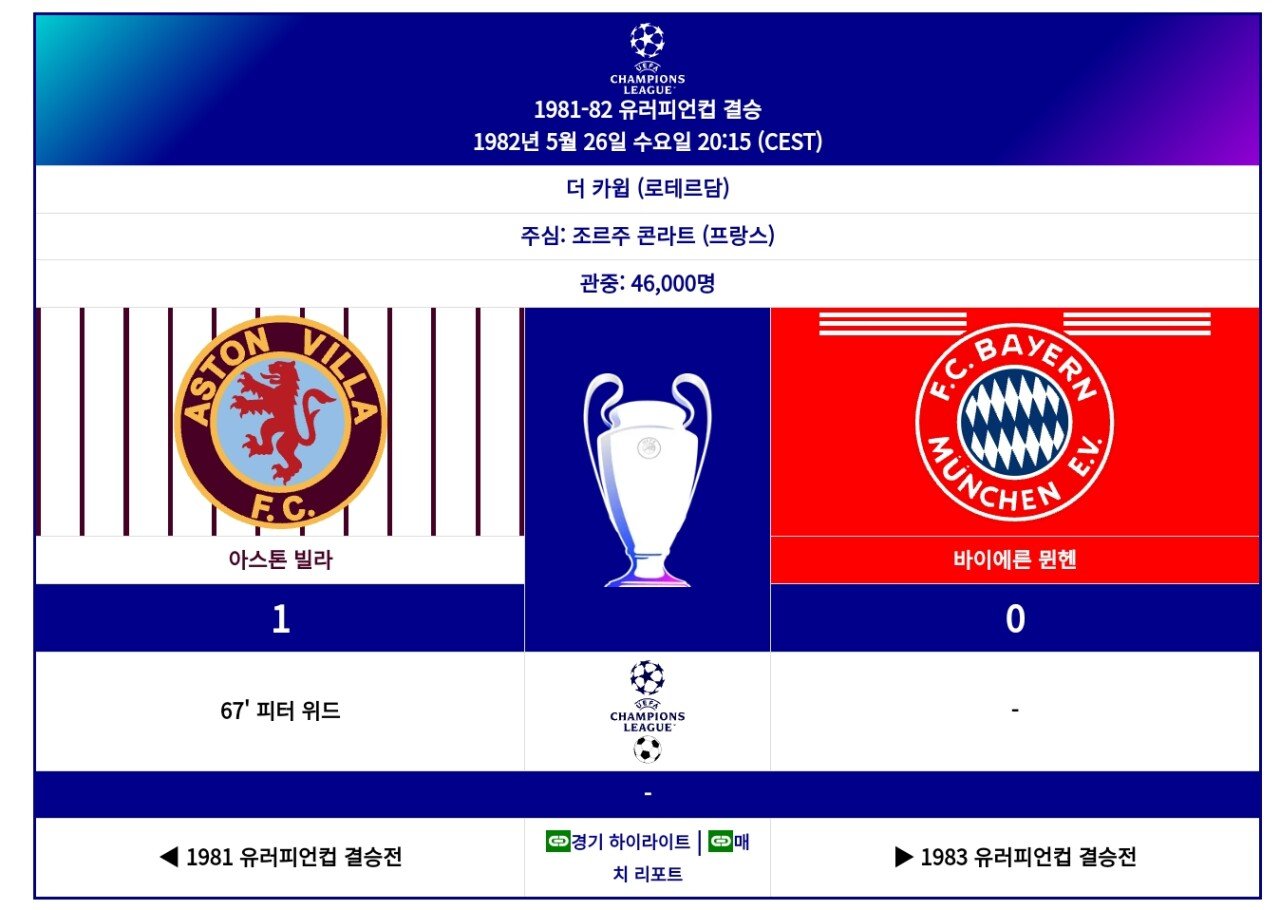 42년전 뮌헨에 첫번째 챔스 준우승을 안겨준 아스톤빌라