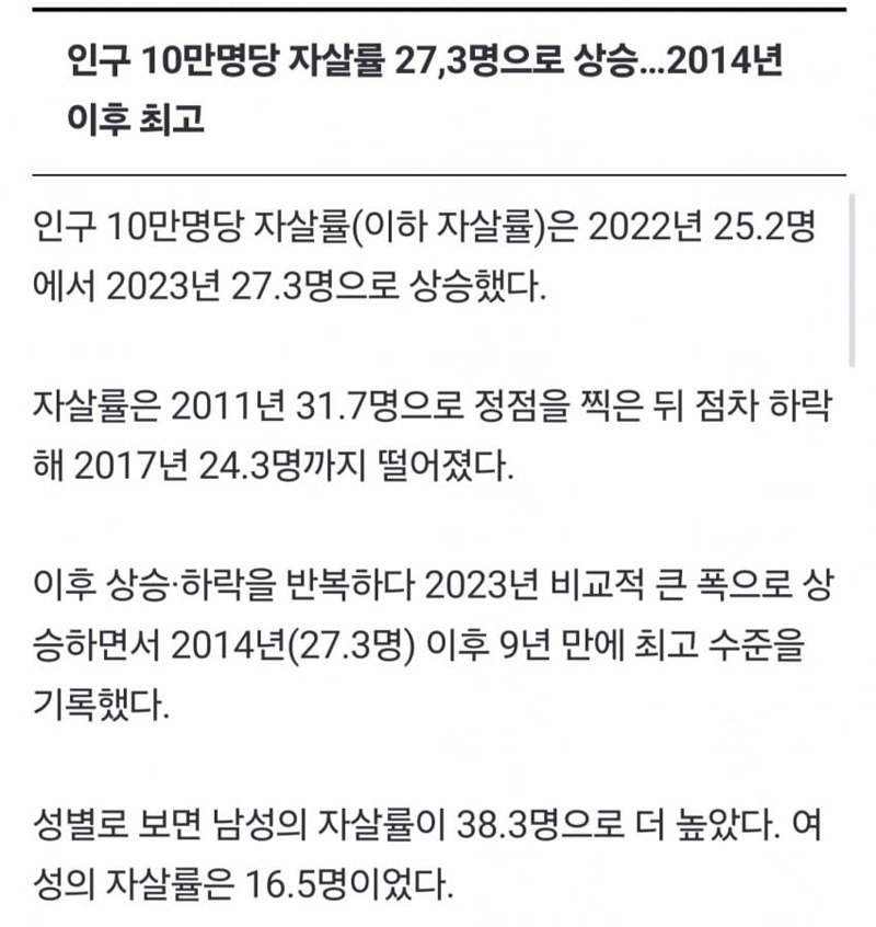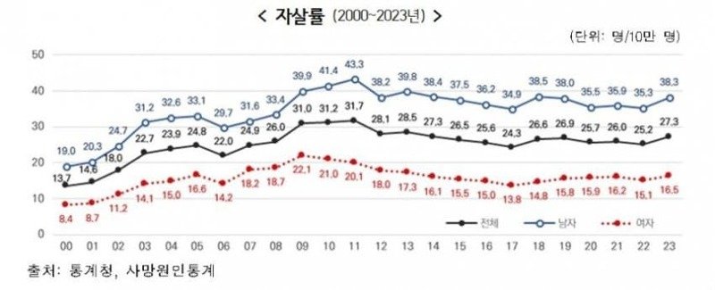 암울한 현재 한국 자살률 지표 ㄷㄷㄷ