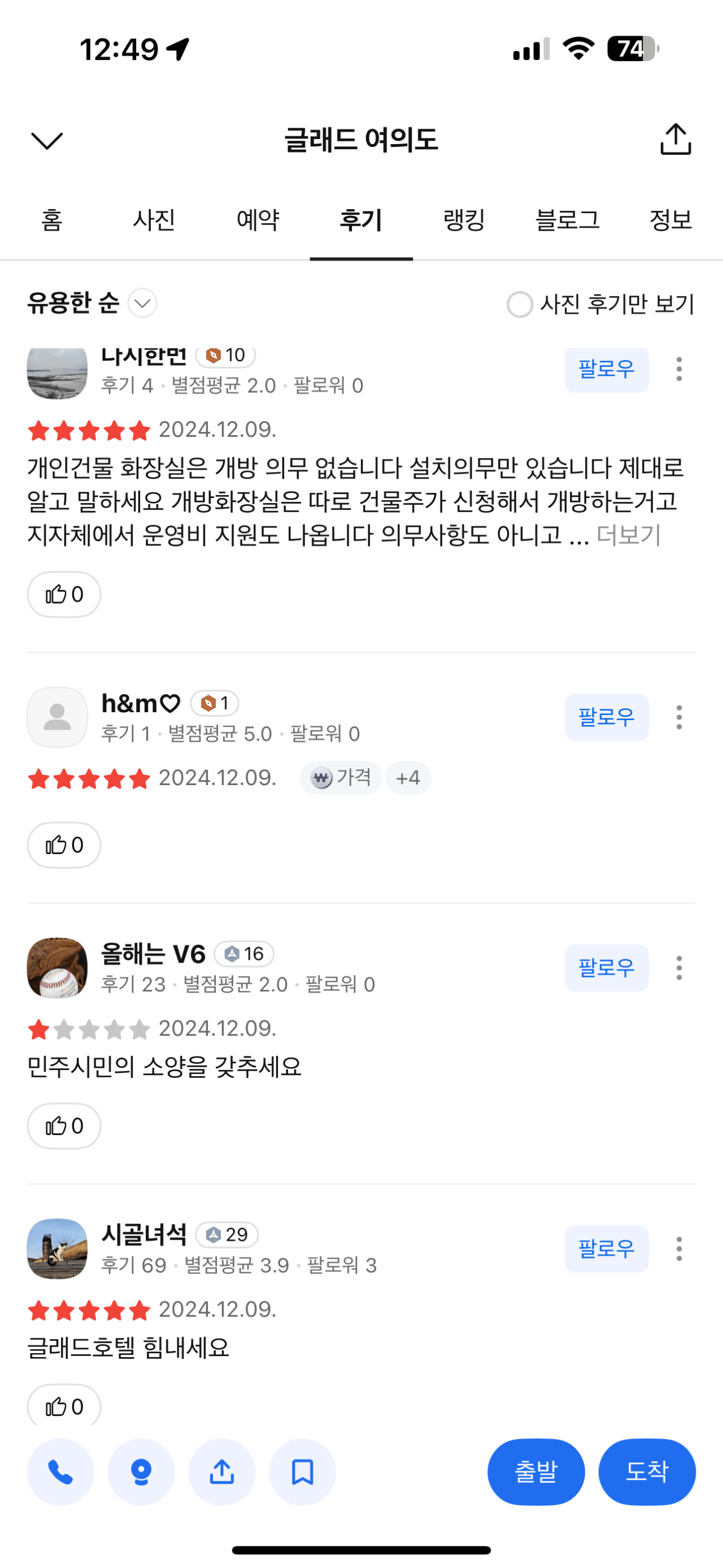현재 화장실 못쓰게 막으니까 별점 테러