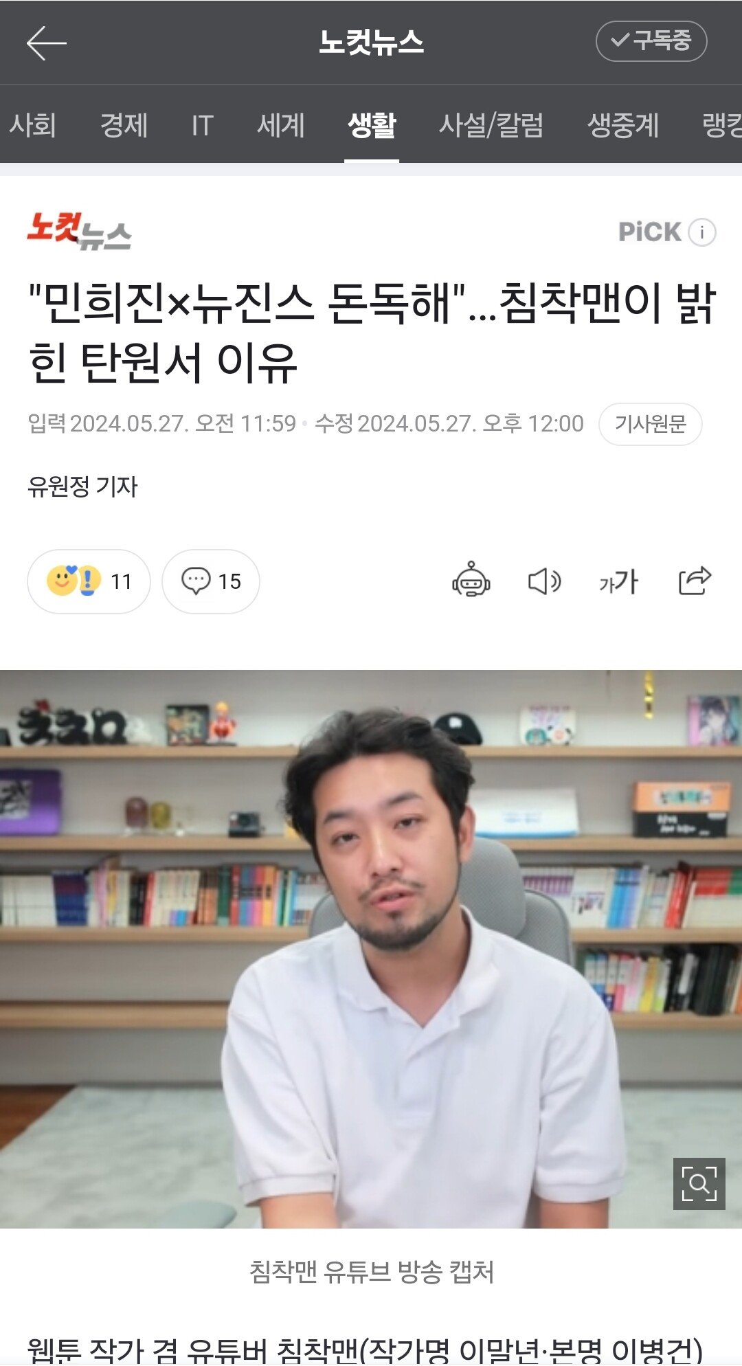 "민희진-뉴진스 돈독해"…침착맨이 밝힌 탄원서 이유