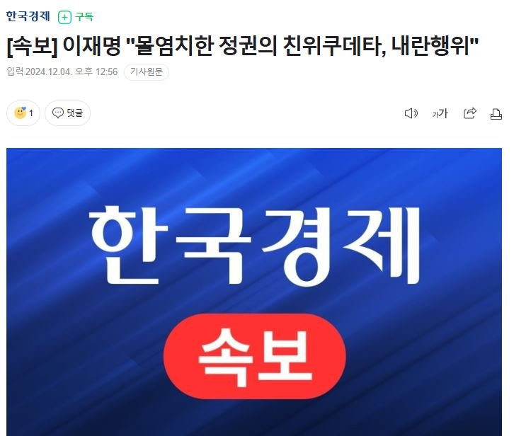 [속보] 이재명 "몰염치한 정권의 친위쿠데타, 내란행위"