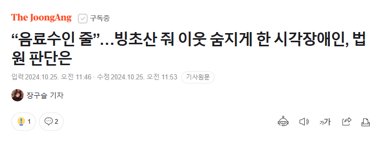 음료수인줄 알고 빙초산 줘 이웃 숨지게 한 시각장애인