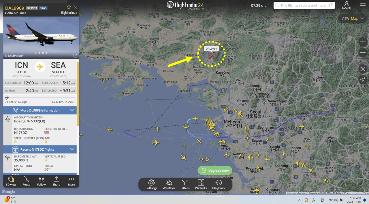 뭔가 보니 델타항공 (인천 - 시애틀) 항공기인데....