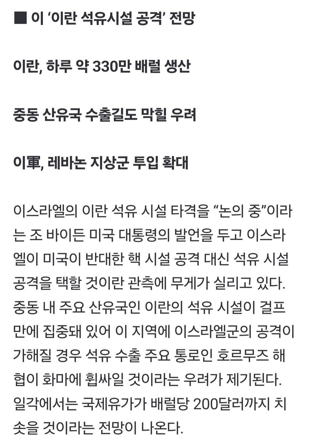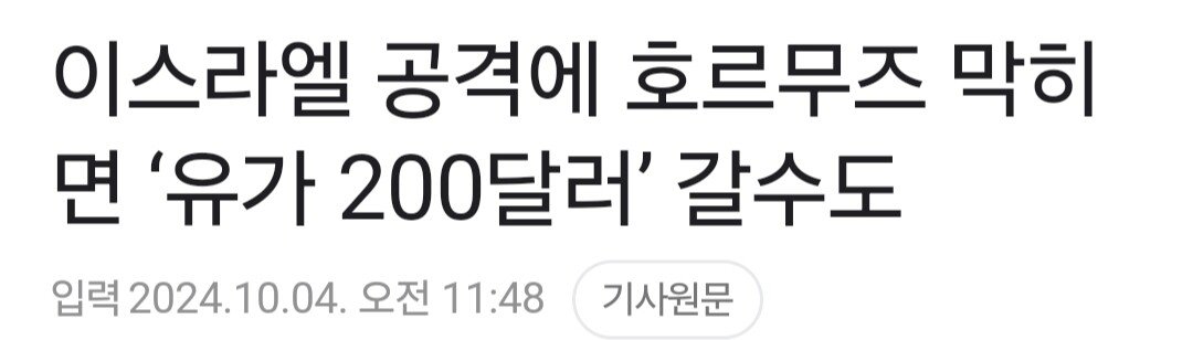 이스라엘이 이란 공격하면 유가 200달러 갈 수 있다