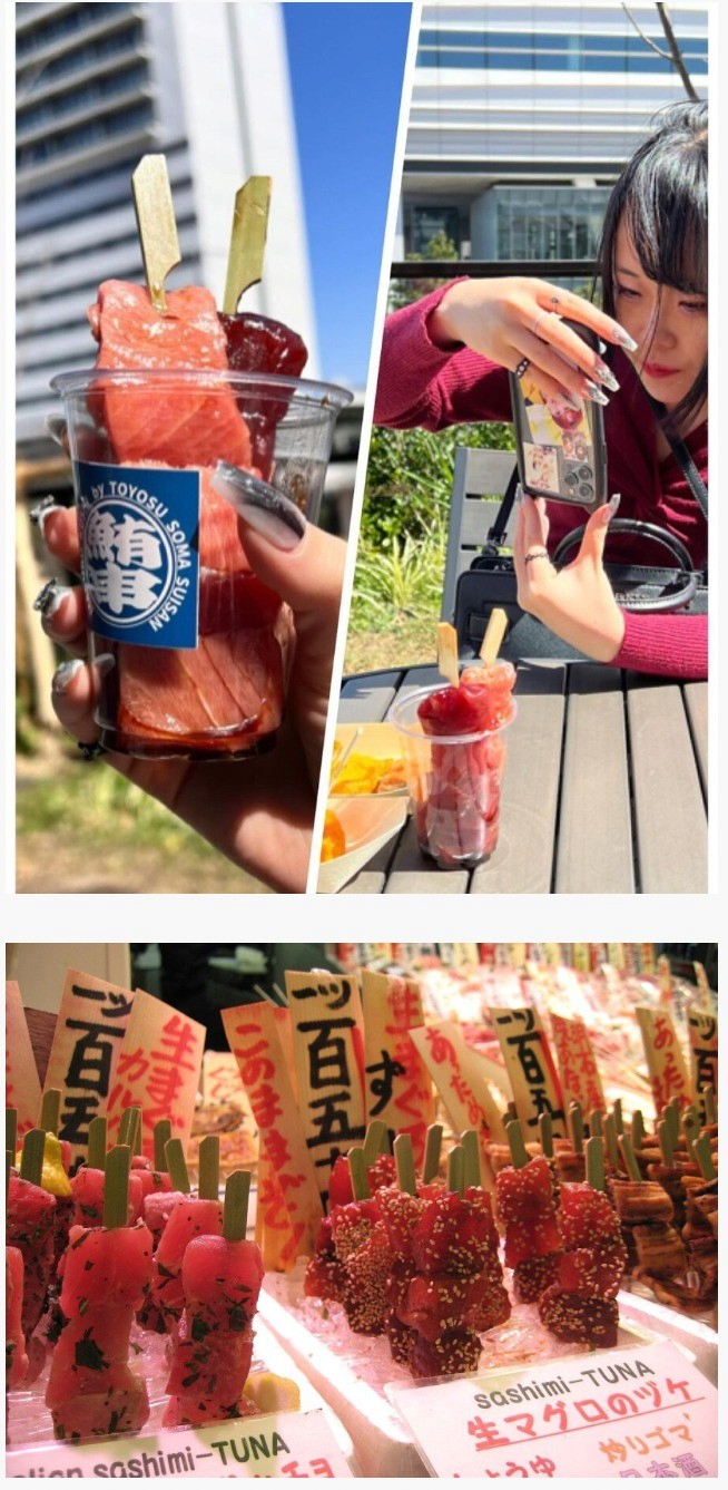 일본 시장에서 파는 참치 꼬치 비주얼 .jpg