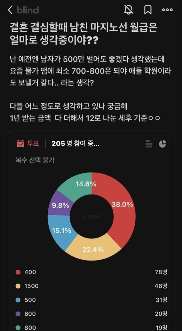 블라)요새 결혼할때 남친 마지노선 월급은 얼마로 생각중이야?