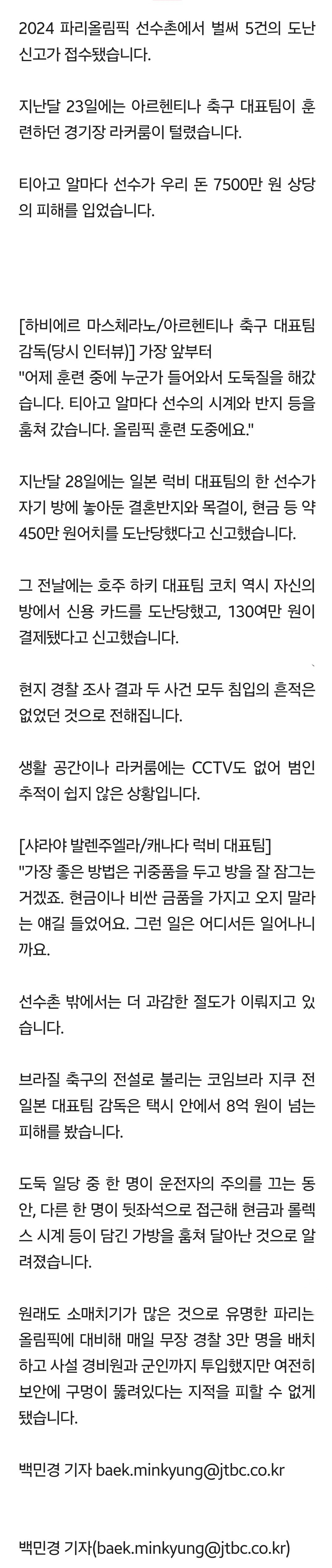 올림픽 선수촌 이번에는 도난사건 벌써 5건.jpg