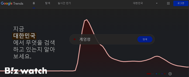 구글 트렌드에서는 비상계엄이 해제된 지금까지도 계엄령이 실시간 검색 트렌드 1위를 차지하고 있다.