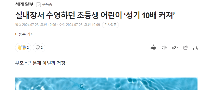 실내장서 수영하던 초등생 어린이 '성기 10배 커져'