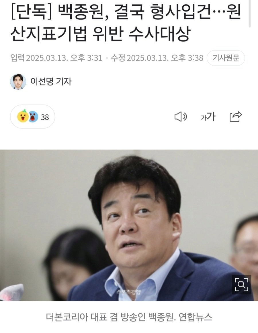 속보) 백종원 결국 형사입건 ㄷㄷ.
