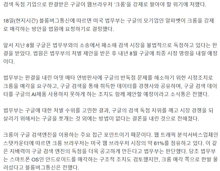 구글에서 크롬 쪼개지나...美법무부, 강제 매각 추진