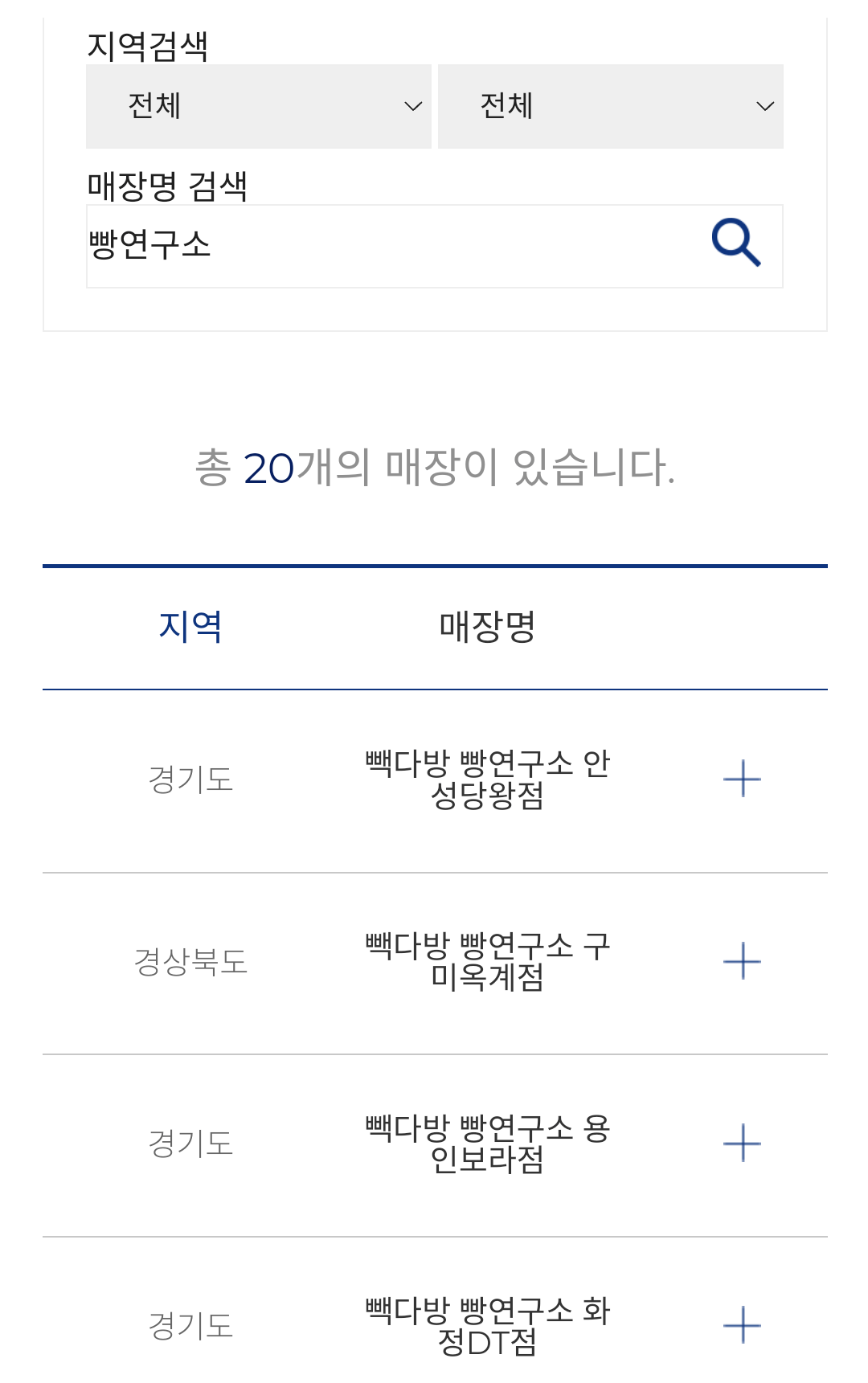 빽다방 빵연구소라는 지점 20개 짜리