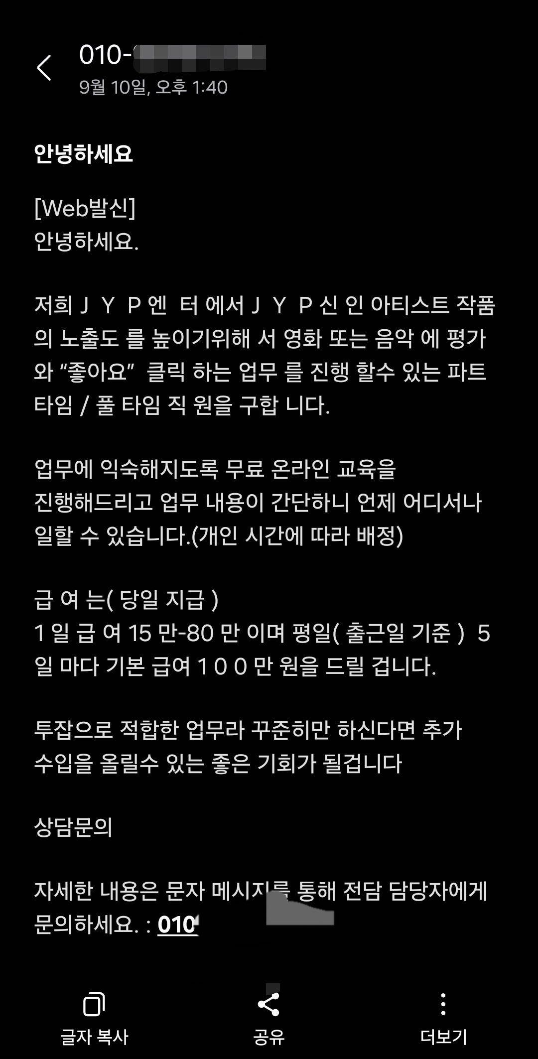 는 사칭문자라고 하니 피해받지 않게 조심하세요