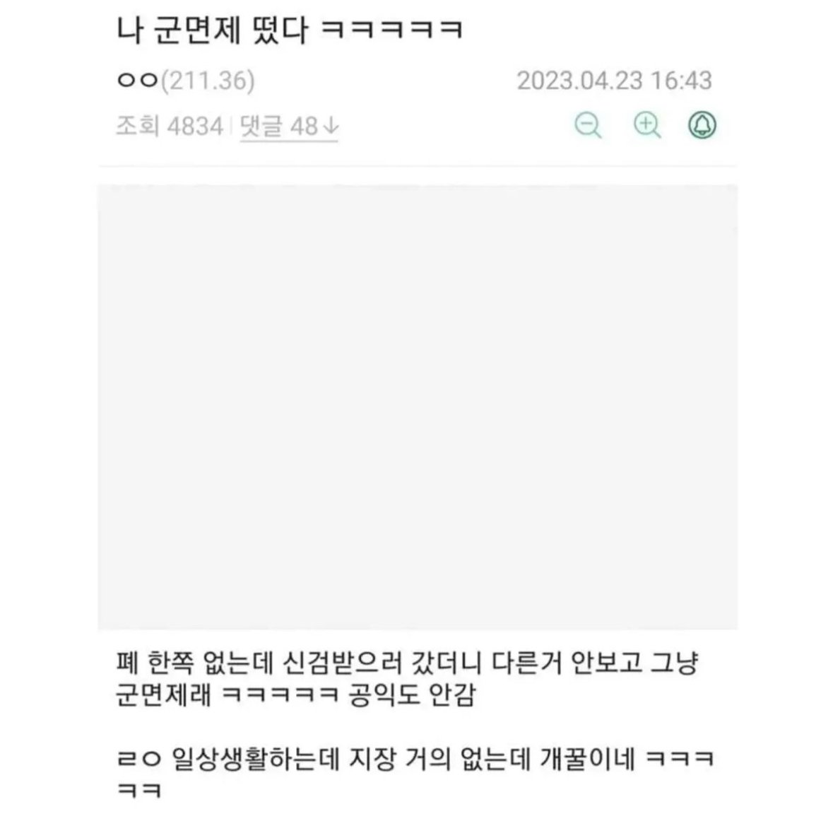 군면제 떠서 신난 남자....JPG