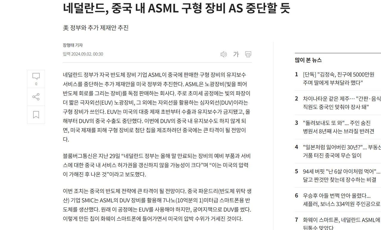 네덜란드도 통수 씨게 치네 duv장비 중국이 싹쓸이 해갈때 장비 다 팔아먹더니