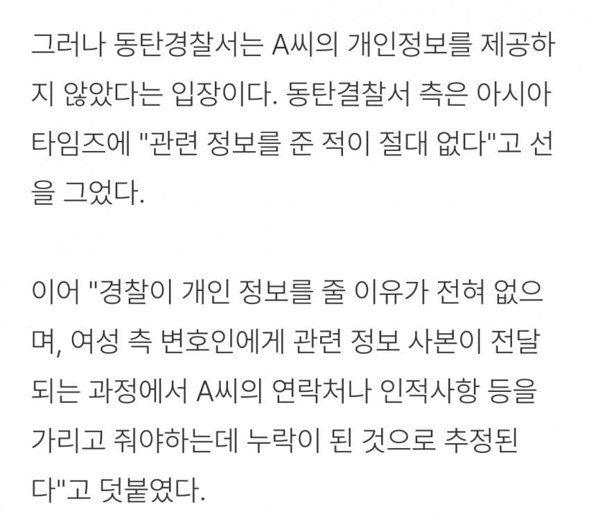 기사 읽어보니까 경찰이 서류 보낼 때 개인정보 가리는 걸 실수(?)로 누락했다는데...