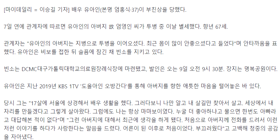유아인, 부친상…"슬픔 속 빈소 지키는 중"
