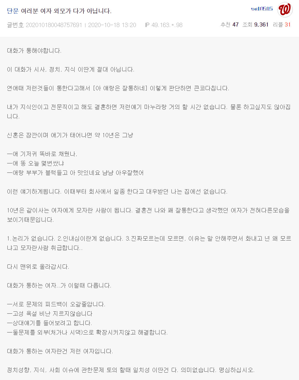 결혼을 앞에 둔 남자들에게 충고하는 엠팍 대현자