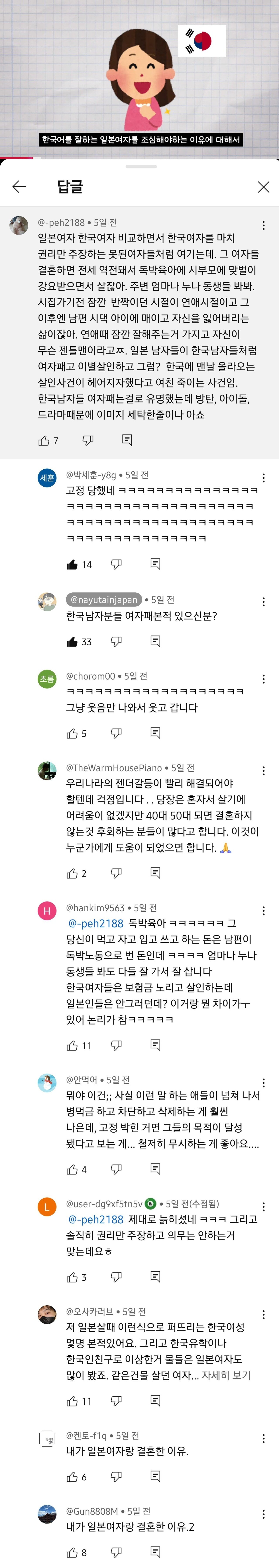 일본여자와 결혼생활 관련 유튜브 댓글.jpg