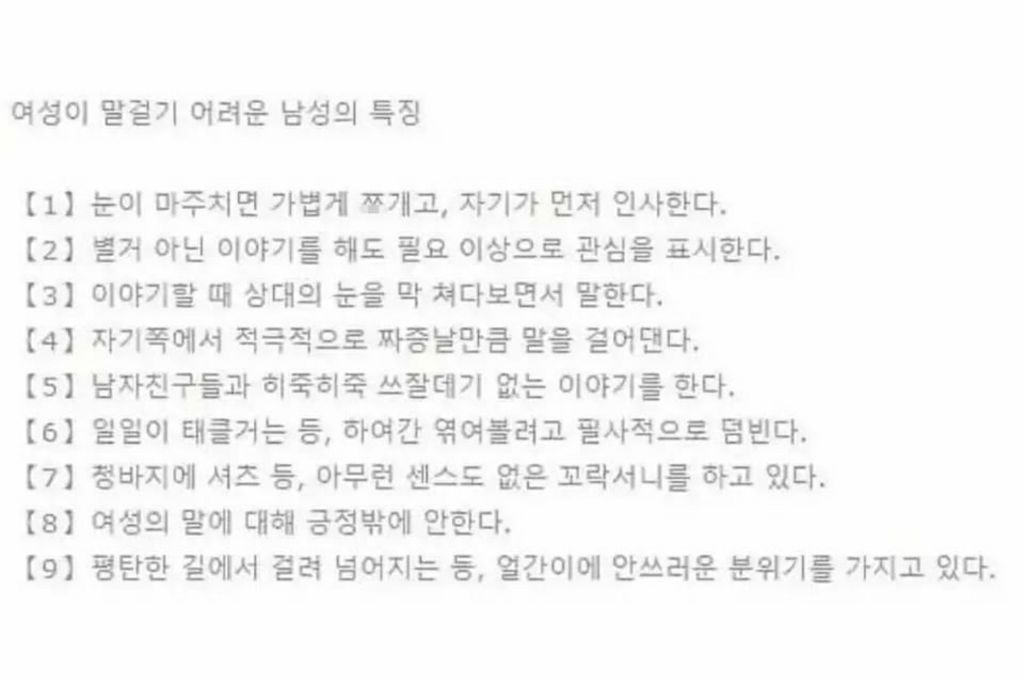여성이 말 걸기 쉬운 남성과 그렇지 않은 남성의 특징.jpg