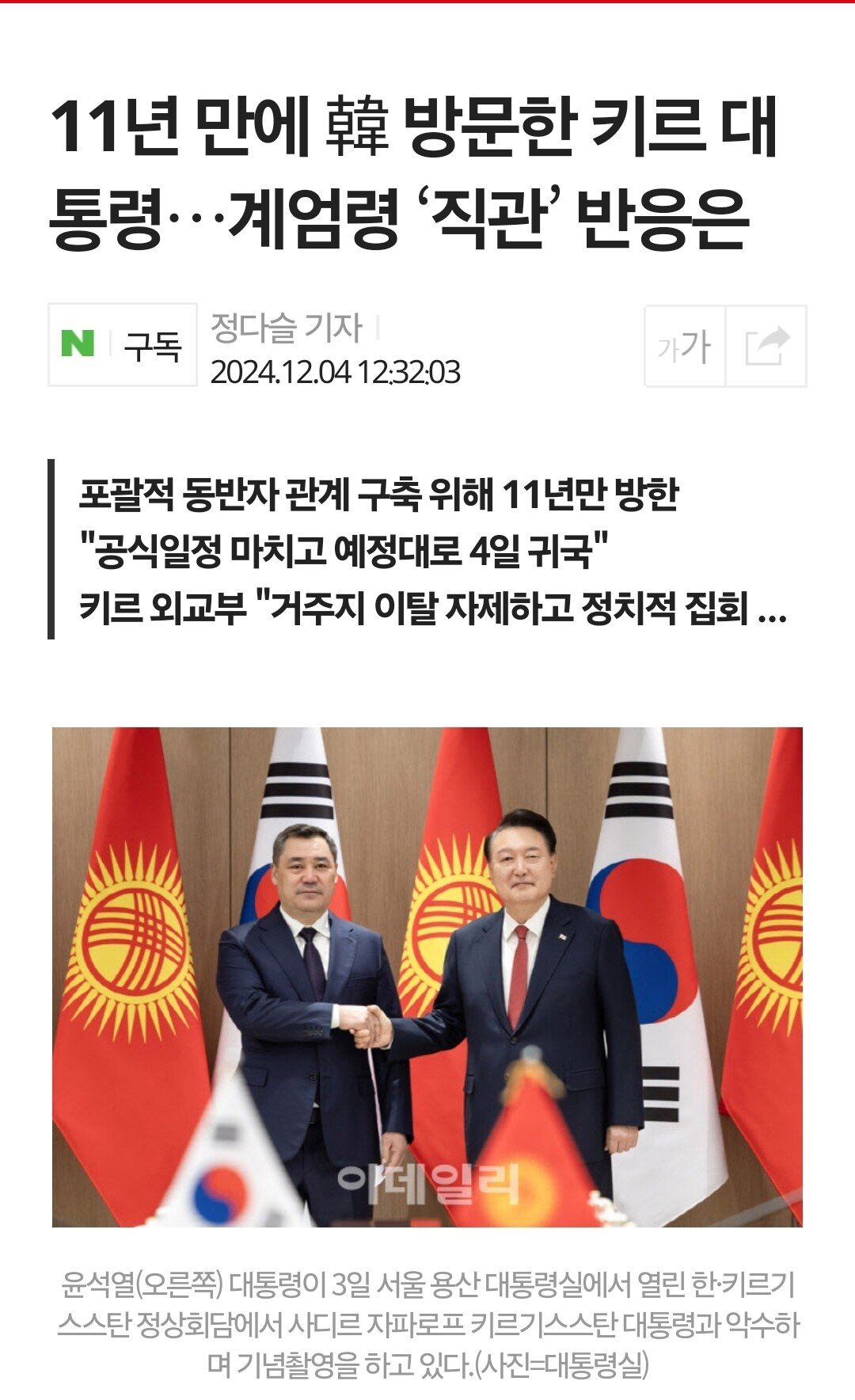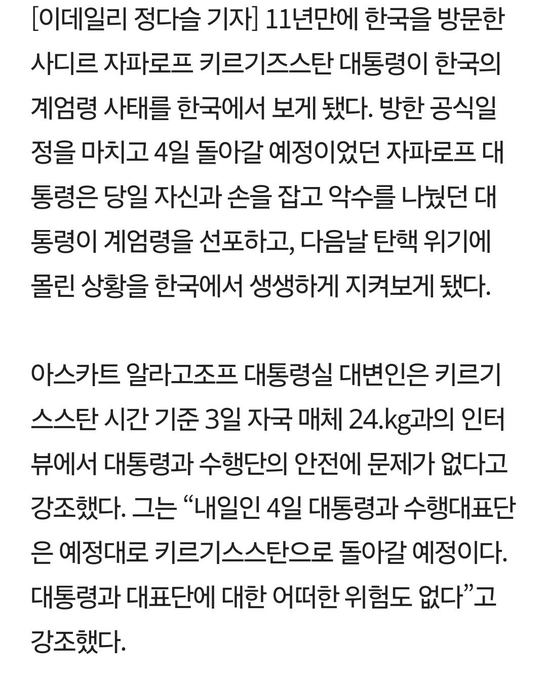 키르기스스탄 대통령 : 야 내가 말이야 계엄령을 겪었다니깐? 어? 안믿어?