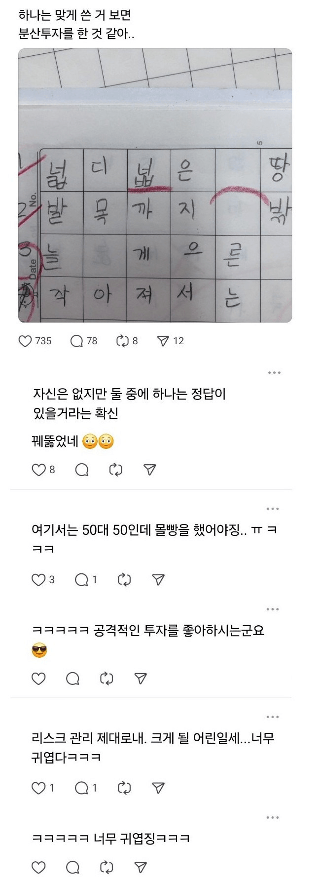 받아쓰기에 분산 투자한 초등학생