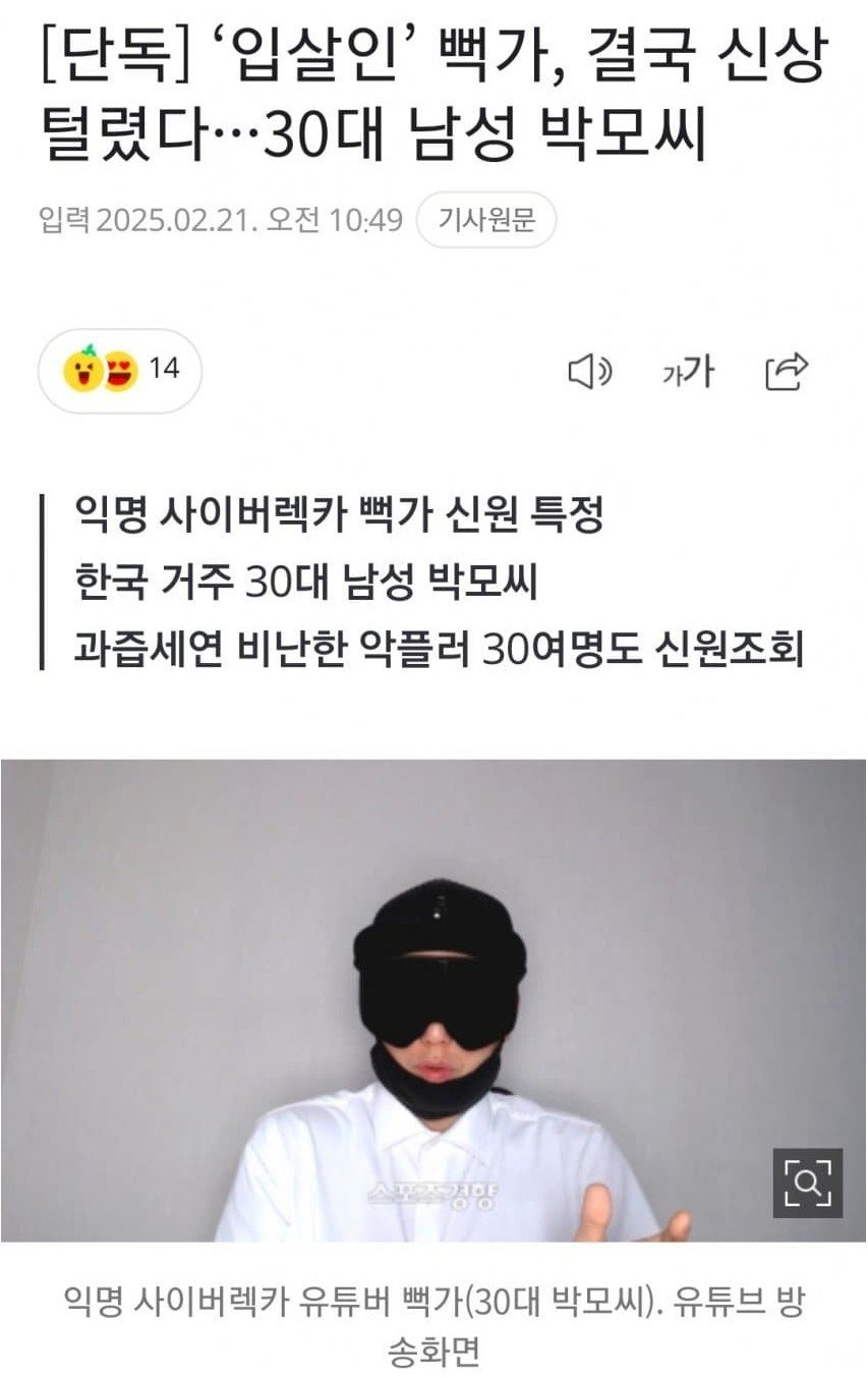 유투버 뻑가 신상 털림 ㄷㄷㄷ