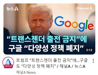 트럼프 "트젠의 여성종목 출전 금지"에, 구글 "다양성 정책 폐지"로 응답