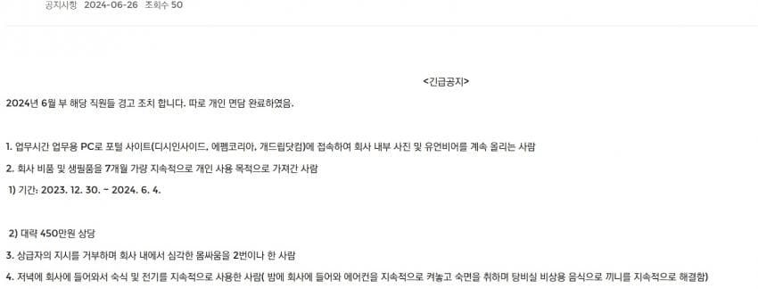 회사 직원 경고 조치 사유...jpg