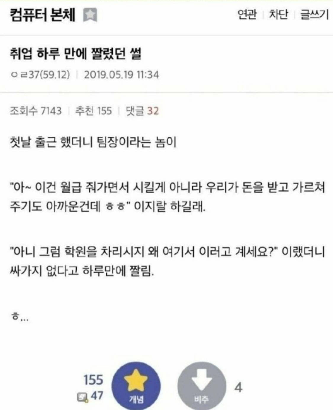 취업 하루만에 짤린 디시인.jpg