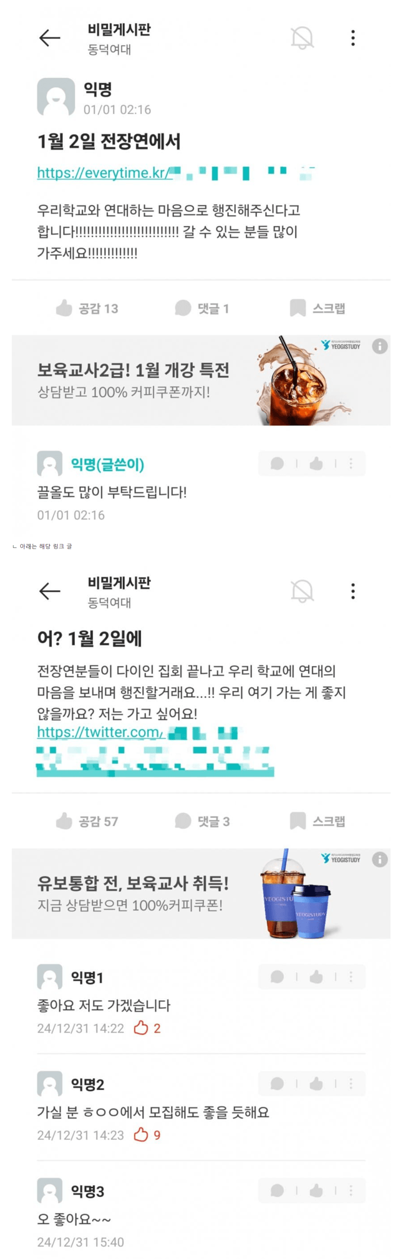 동덕여대 전장연과 연대 합동 시위 예정...ㄷㄷㄷㄷ