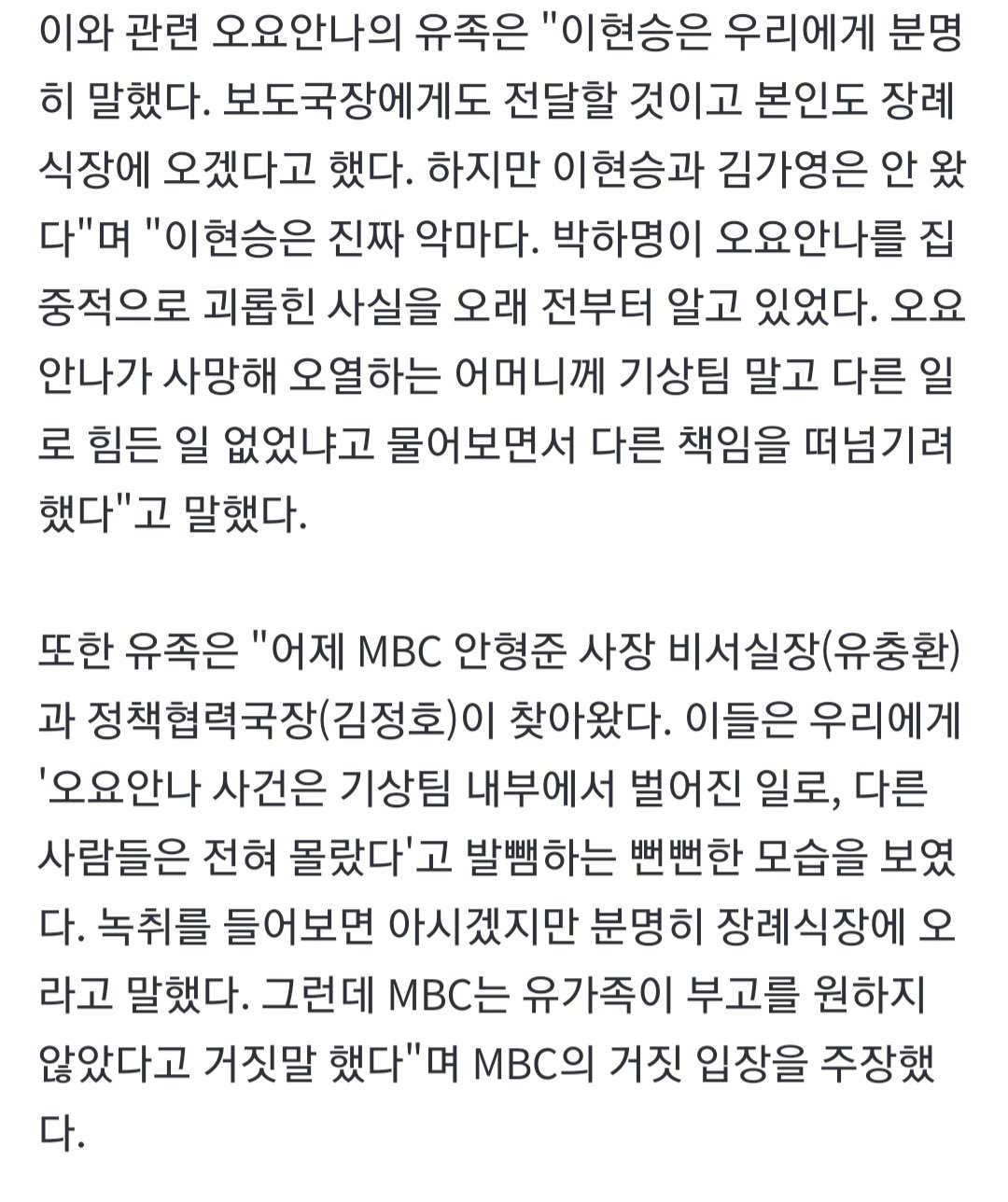 고 오요안나 괴롭힘 사건 몰랐다고 발뺌한 mbc 사장 비서실장 과거