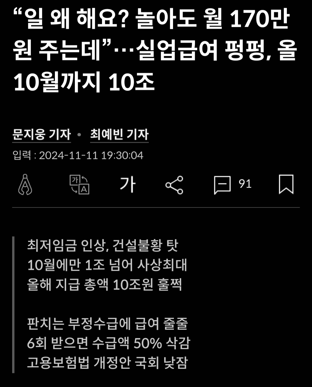 “일 왜 해요? 놀아도 월 170만원 주는데”…실업급여 펑펑, 올 10월까지 10조