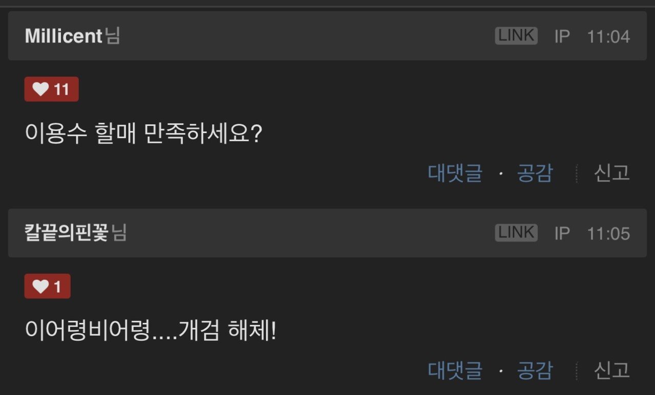 욕설이나 비방 목적의 댓글은