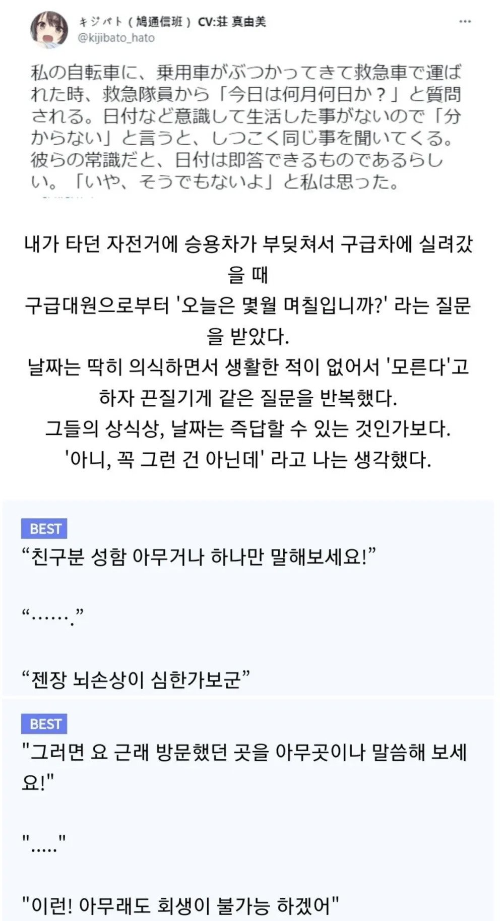 뇌손상 확인을 위해 구급대원이 한 질문.JPG