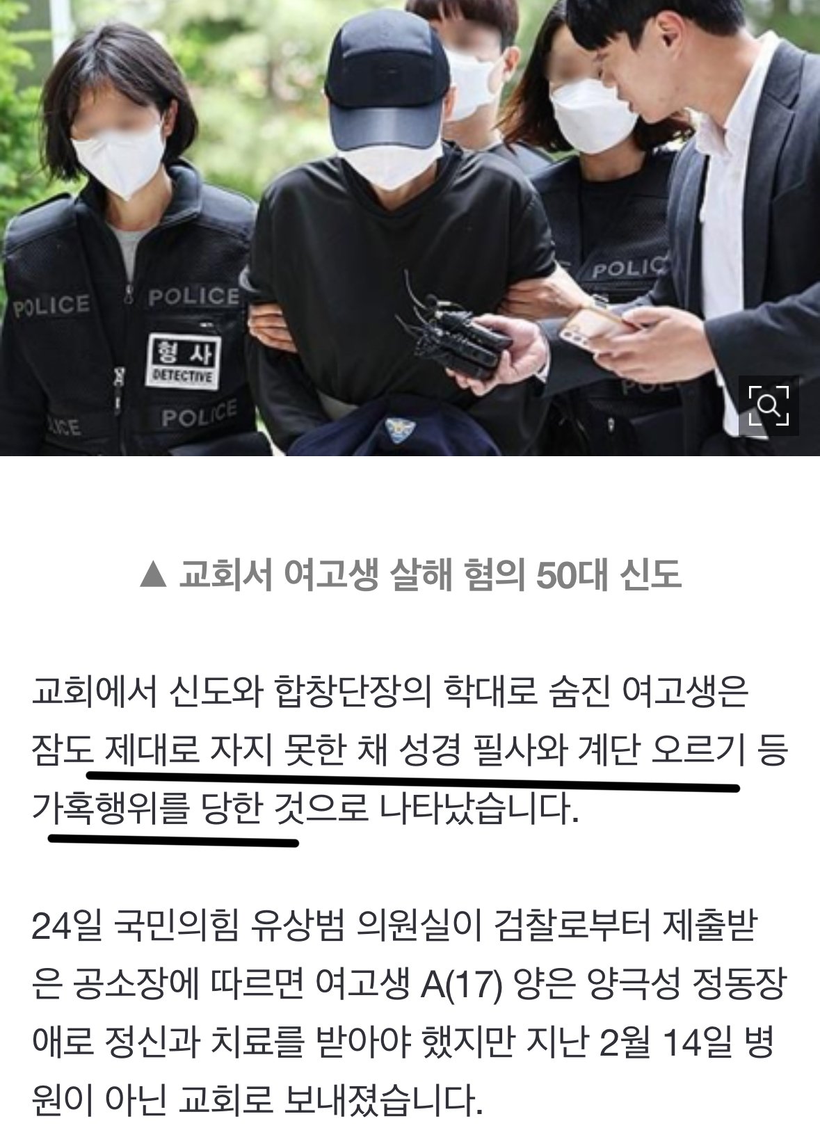교회서 숨진 여고생, 5일간 잠도 못자고 성경 필사등 가혹행위