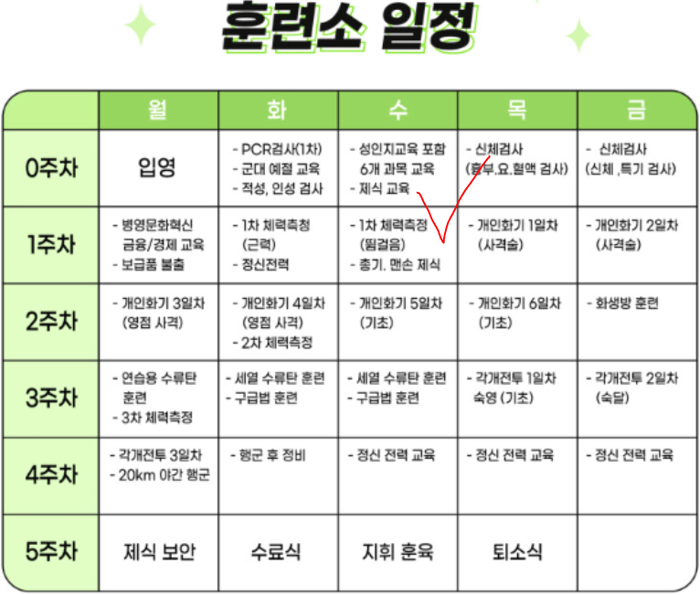 부대마다 약간 차이는 있겠지만 제식부터 시작해서 훈련소 일정 시작함