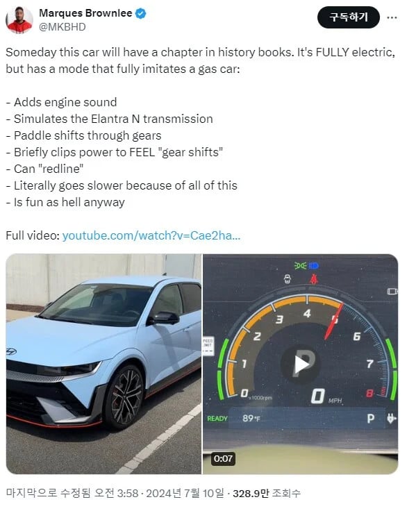 미국 최대 테크유튜버가 말하는 아이오닉 5N.jpg