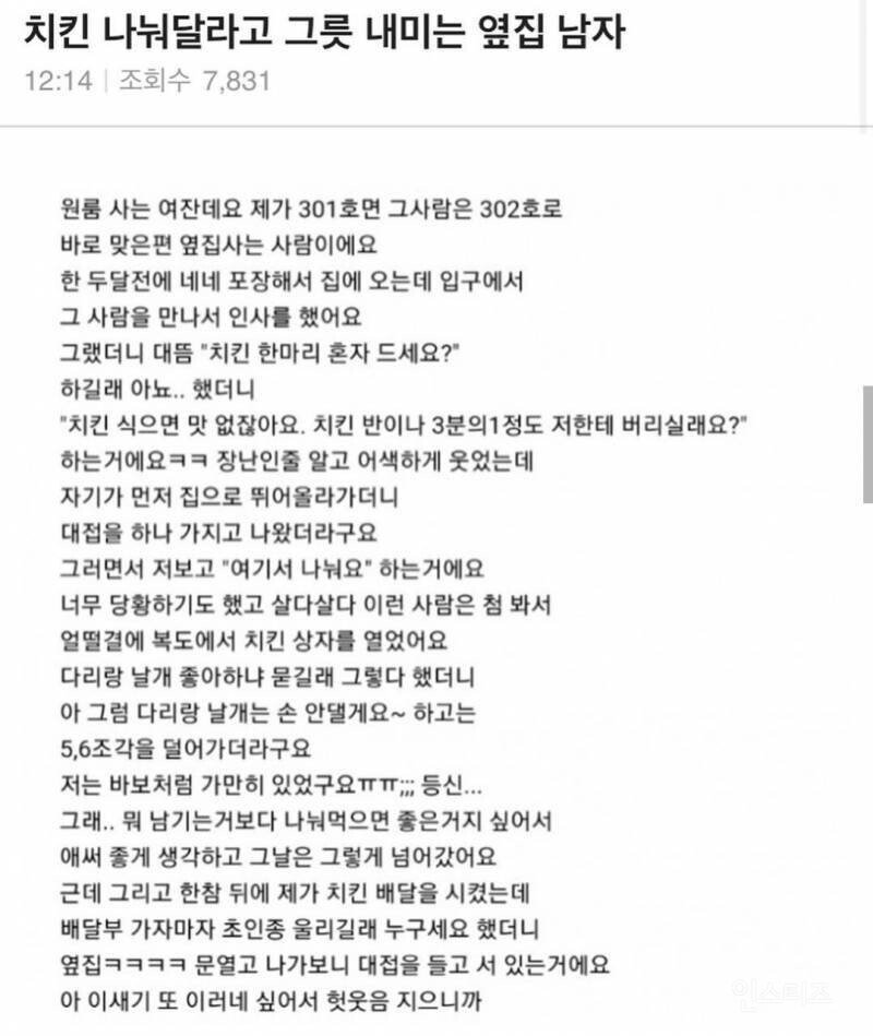 치킨 나눠달라는 옆집 남자