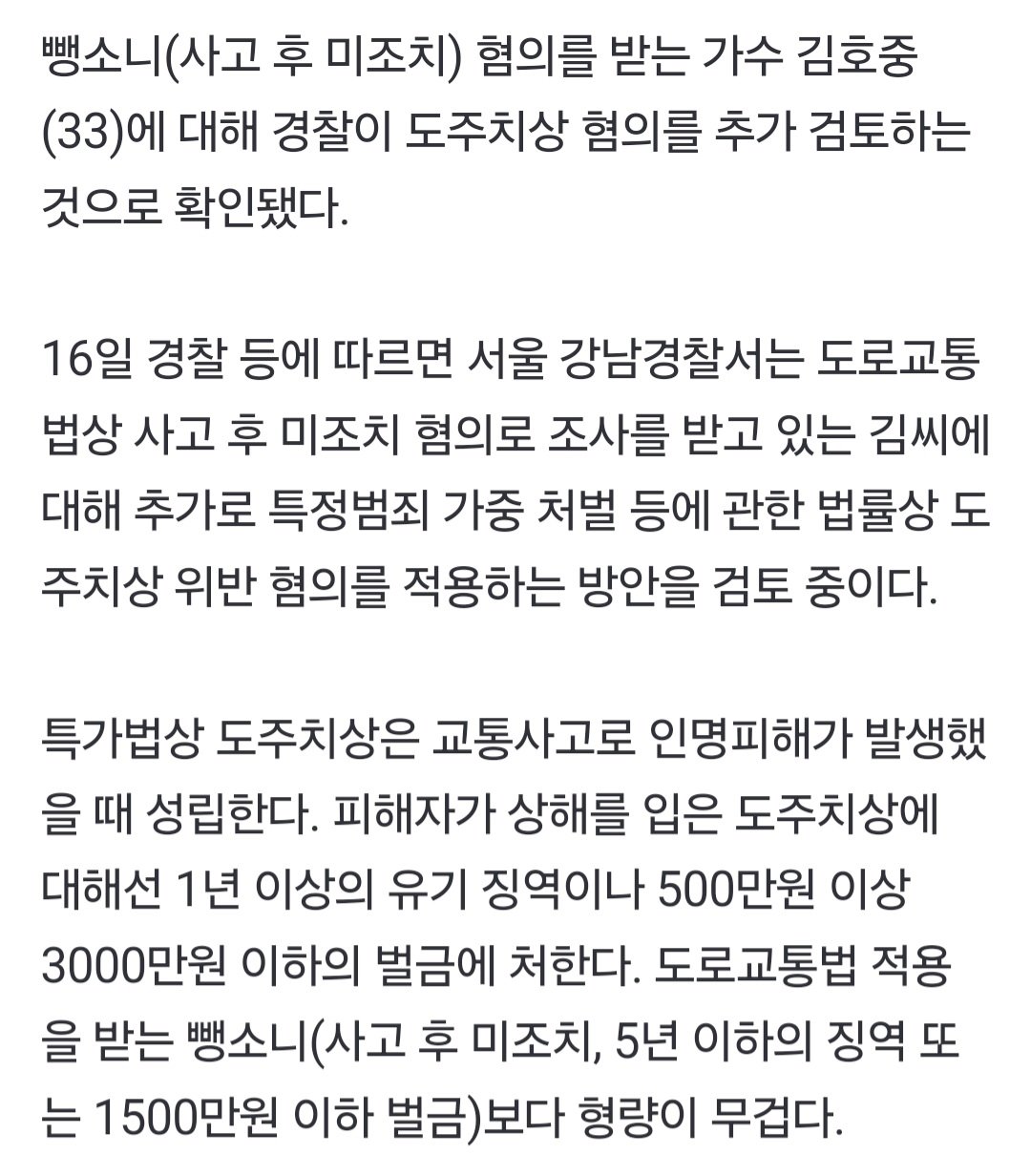 [단독]경찰, 김호중 '뺑소니' 혐의에 '도주치상' 추가 검토