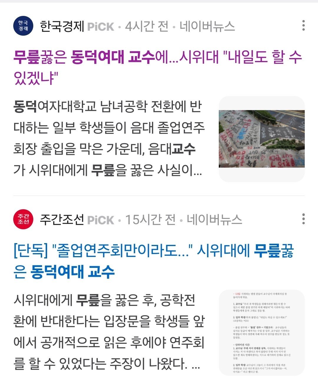 교수 무릎 사건 2건.